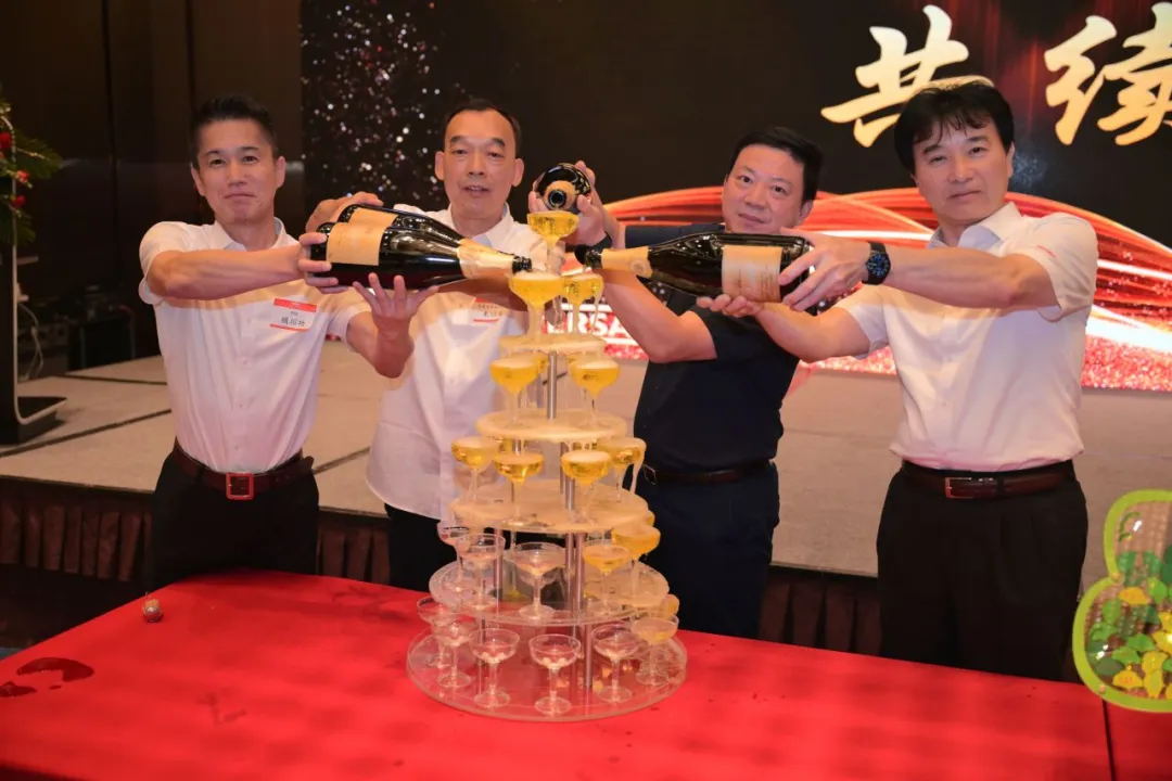 流淌的香檳象征著財富源源不斷,香檳塔象征著事業蒸蒸日上。20周年,又是一個新的起點,SS店的代表和PTC一起注滿香檳塔,祝福全體SS店與PTC,在未來攜手共贏,共續輝煌。